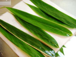 食べ物を包のに利用、笹あめ、笹団子、ちまきなどササの葉に包むと食べ物が長もちしる、飾り物ではない。